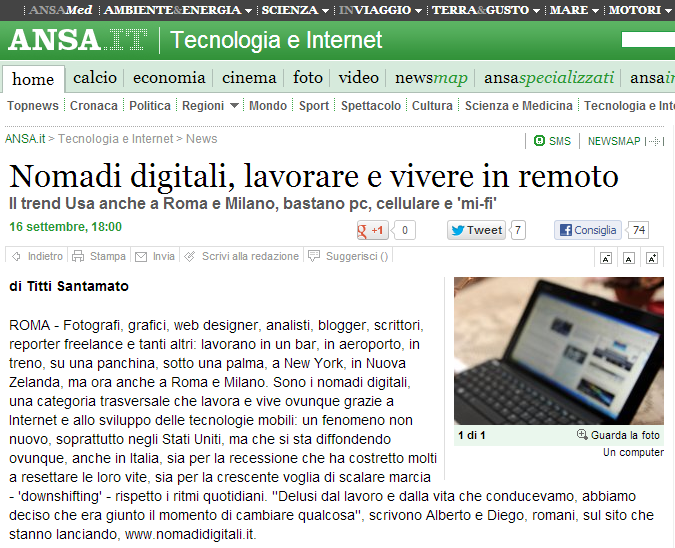 Vai al contenuto originale“Nomadi digitali, lavorare e vivere in remoto. Il trend Usa anche a Roma e Milano, bastano pc, cellulare e ‘mi-fi’” di Titti Santamato è il primo articolo uscito su Nomadi Digitali.